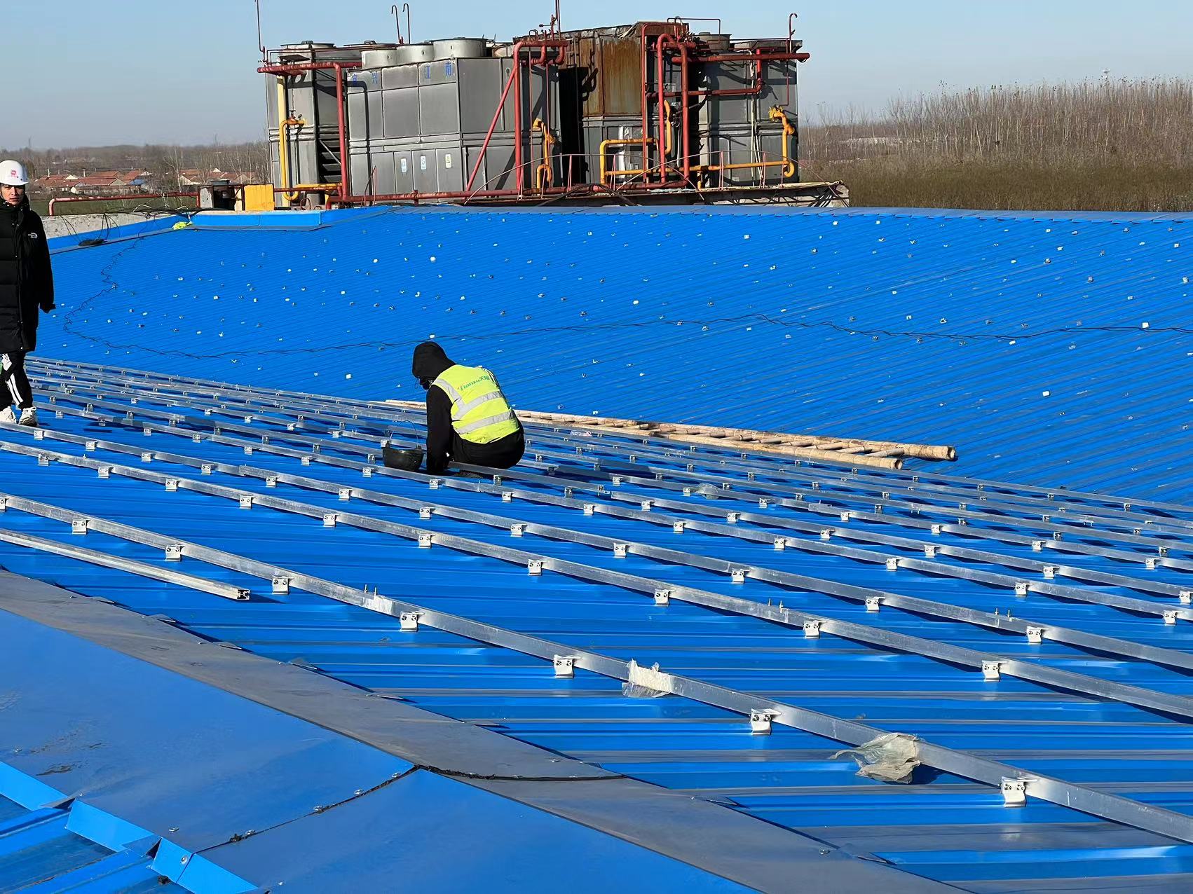 本項目位于舜王街道,由于廠區屋面銹蝕嚴重。前期需要對屋面彩鋼瓦進行更換,更換完成后進行組件安裝。